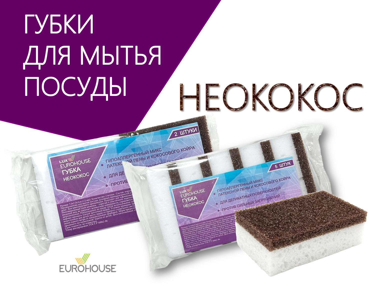 Применение НЕОКОКОСА для изготовления абразивного слоя губок для посуды – инновация, недавно появившаяся на российском рынке. Прочный, эластичный, гипоаллергенный НЕОКОКОС позволяет бережно и эффективно очищать деликатные поверхности тефлоновой посуды, ухаживать за хромированными изделиями, подходит для повседневной уборки и мытья посуды.